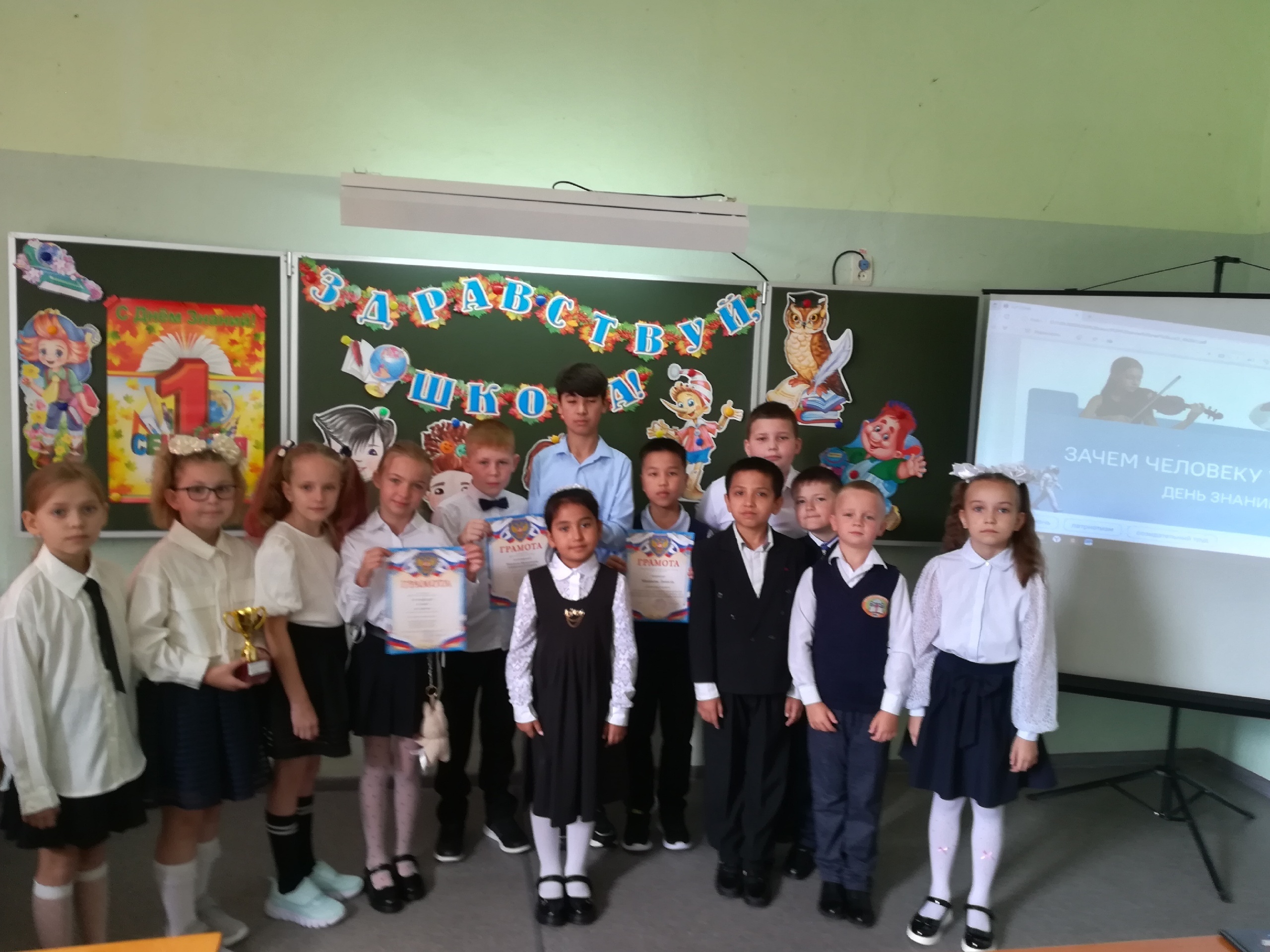 1 сентября 3 классе провел "Разговоры о важном" по теме :"Зачем человеку учиться?" Ребята познакомились с историей праздника 1 сентября - Днем Знаний, получили свои предсказания и поздравления с праздником Знаний. Третьеклассники участвовали в игровой программе "Здравствуй, 3 класс! ". Ребята выаолняли задания Маши и собирали 6 ключей знаний. Все задания дети выполнили, закрепили и проверили свои знания по предметам. Все получили сладкие призы, по итогам 2 класса наш класс занял 1 место в школе получил грамоту и кубок за 1 место.